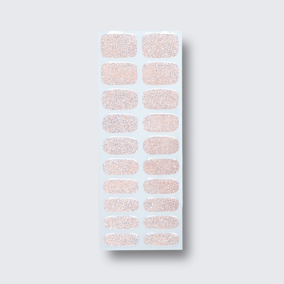 Beige base. Light. Heavy silver glitter. Opaque. Cool undertone.