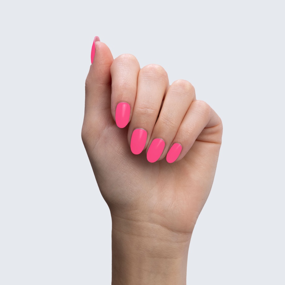Bubble gum pink. Neon. Medium. Opaque. Cool undertone.
