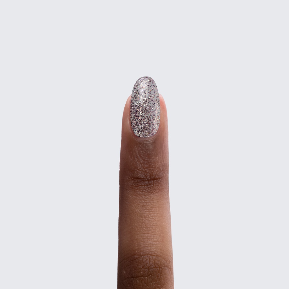 Clear coat with rose gold glitter & silver sparkles. Translucent.